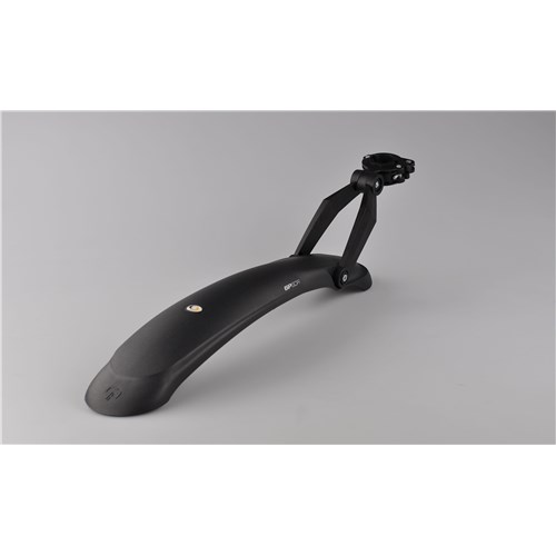 Błotniki GP PRO zaprojektowane zostały z myślą o amortyzowanych rowerach. Błotnik przedni montujemy za pomocą specjalnego zapięcia w koronę widelca, umożliwia to wzdłużną regulację położenia błotnika względem opony. Dzięki takiemu montażowi błotnik podczas jazdy skręca wraz z kołem, a jego płetwa cały czas znajduje się w niewielkiej odległości od opony zapewniając optymalną ochronę podczas jazdy. Istnieje możliwość dokupienia adaptera do rur sterowych 1,5”.