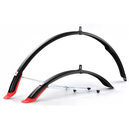 UBIQUIT 45 LONG INOX – mudguard set for 28”, black/red